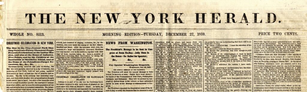 - “The Annual Jewish Feast of Dedication” is a lengthy description of Hanukah, a detailed and thorough explanation of the holiday for those who know nothing about it.  It is interesting to note that the popular name for the holiday, “Hanukah” is not mentioned in the article.  The “Feast of Dedication” is defined as “the annual Jewish festival in commemoration of the purification of the Second Temple.” The festival is marked by burning lamps fed by pure olive oil in the synagogues and private residences; one additional lamp is lit every night for eight nights. When the lamps are lit, “the children … are each supplied with a bunch of tapers, which, of course, they take great delight in lighting, waving, putting out, relighting … while dancing, singing and general festivity reign supreme, just as at one of our New England ‘apple bees.’”  “The lamp used at this festival is peculiar…” – it is made of silver, has a drawer of eight compartments, each containing a wick and olive oil; “to the right of the whole apparatus is an upright rod, bearing a cup, called the sexton. This is also filled with olive oil and is used in relighting or replenishing the other lights.”  The piece continues with the history of the holiday in great detail, including the victory of the Maccabees over Antiochus’ armies and the subsequent cleansing, purification, and rededication of the Temple, including the story of the lone bottle of oil with the seal of the high priest intact, a one-day supply which miraculously lasted for eight days. The anonymous author of this holiday guide refers to an academic source for the information on the holiday, and quotes from it liberally: “The Book of Antiochus, translated from the original Hebrew and Arabic, comprehended in two manuscripts, in the British Museum, and published for the Hebrew Antiquarian Society by H. [Herschell] Filipowski, in 1851, will give a full account of the … origin of the ‘Feast of Dedication.’”The author’s description of The Book of Antiochus is not quite accurate; Filipowski actually translated it from Aramaic – not Arabic -  into Hebrew and English. It was the first translation of the work into English, thus making it available to a wide audience.  Filipowski’s translation of The Book of Antiochus  was published only eight years before the article in the Herald appeared, appended to his translation of Mivhar Ha-Peninim [The Choice of Pearls] a volume which is currently quite rare. It is remarkable that someone in the United States in 1859 would quote from something so esoteric.The two columns comprising “The Hebrews in New York” can be further mined and analyzed for further historical, religious, and sociological information on Jews in New York in 1859.  If these two columns can provide such depth and richness on Jews in New York, just imagine what the entirety of the newspapers in Professor Ron Rubin’s collection can yield!